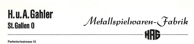 Mit 10 Personen versuchte man 1954 einen Neustart mit der Spur H0. Obwohl der Konkurrent BUCO in Diepoldsau auch auf Anhieb ein überraschend grosses Sortiment anbieten konnte. Nach dem Konkurs der Firma BUCO 1958 übernahm man die Ae 4/7 und nahm konstruktive Änderungen vor. 1971 trat Werner Gahler, Sohn Alwin Gahler als gelernter Maschinenzeichner in die Firma ein und brachte neue Impulse. Nach dem Rücktritt von Hugo Gahler im Jahre 1973 wurde das Produktvolumen massiv ausgeweitet. Ab 1974 wurde in St. Peterzell die Personenwagen-Gehäuse produziert. 1979 trat auch Alwin Gahler in den Ruhestand und die Firma wurde in eine Aktiengesellschaft umgewandelt. Durch die engen Platzverhältnisse in St. Gallen bezog man 1982 das neue Fabrikgebäude in Mörschwil/SG.Bis heute lenkt auch in den turbulenten Zeiten Werner Gahler das Geschick der Firma Hag.