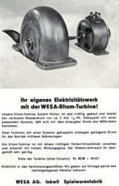 Geldbeutel erschwinglich ist. Ein neues Produkt bildet schliesslich noch die WESA-Peltonturbine, die an eine Wasserleitung angeschlossen genügend Strom liefert, um eine mittlere Anlage zu betreiben.
